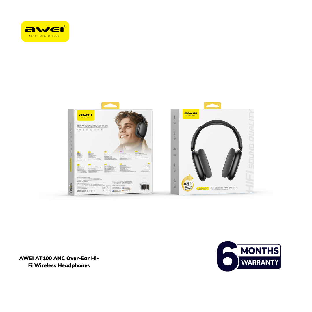Elevate your listening experience with the AWEI AT100 ANC Over-Ear Hi-Fi Wireless Headphones. Designed for music lovers who refuse to compromise on sound quality, these headphones deliver rich, high-fidelity audio across all genres—from classical to rock, jazz to pop. Engineered with active noise cancellation (ANC), they block out unwanted ambient noise, allowing you to immerse yourself fully in your favorite tracks, podcasts, or calls. Whether you’re at home, commuting, or traveling, the AT100 ANC provides a comfortable over-ear fit and wireless freedom. Top Tech Zone guarantees 100% authentic products backed by an official warranty.