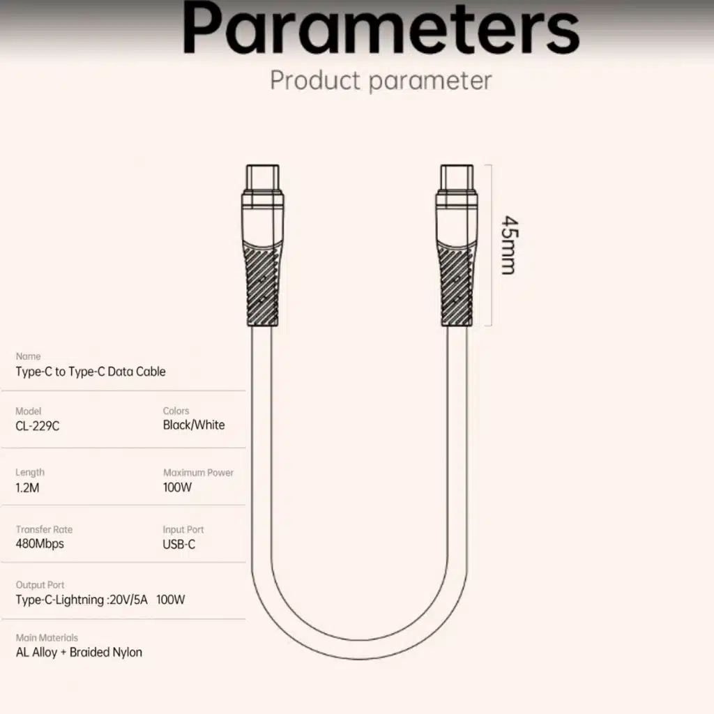 Power up and transfer data at blazing speeds with the AWEI CL-229C Type-C to Type-C Fast Charging Data Cable. Engineered for durability and high performance, this braided cable supports up to 100W of power delivery for rapid charging and 480Mbps data transfer rates. Built to withstand daily wear and tear with a rugged nylon sheath and reinforced connectors, it’s the reliable cable solution for your laptop, tablet, smartphone, and other USB-C devices. Top Tech Zone guarantees 100% authentic products backed by an official warranty.