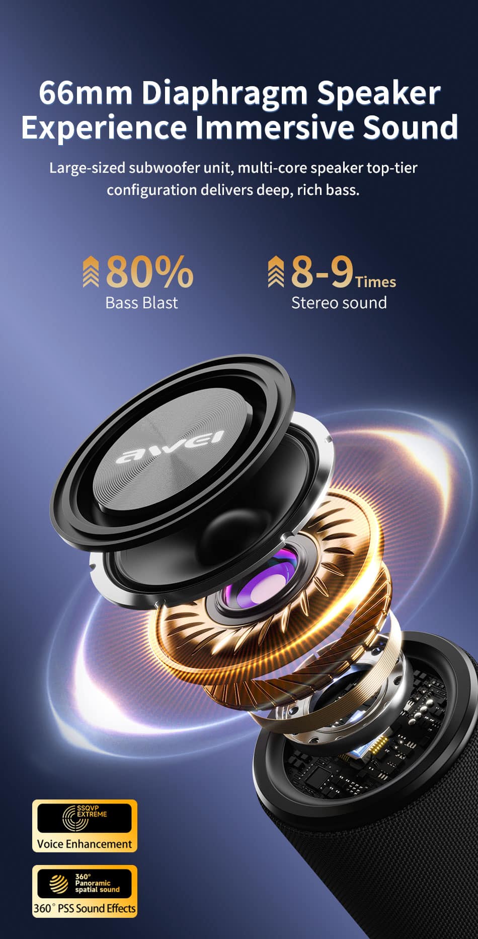 True Wireless Stereo (TWS): Pair two Y669 Lite speakers wirelessly to create an immersive, powerful left-right stereo soundstage.
