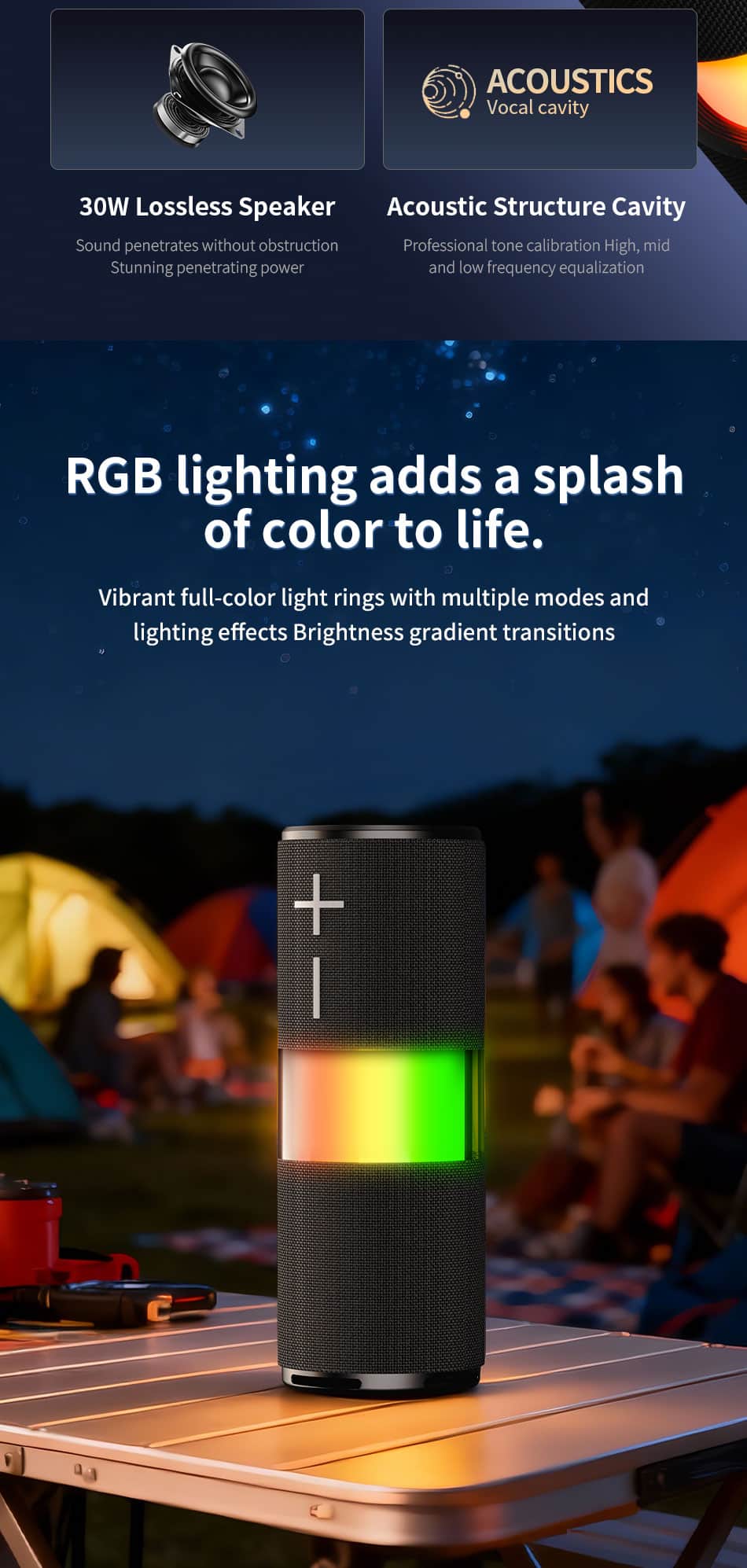 Y669 Lite Portable Speaker: 30W IPX6 Waterproof Bluetooth Speaker with Colorful RGB Lights
