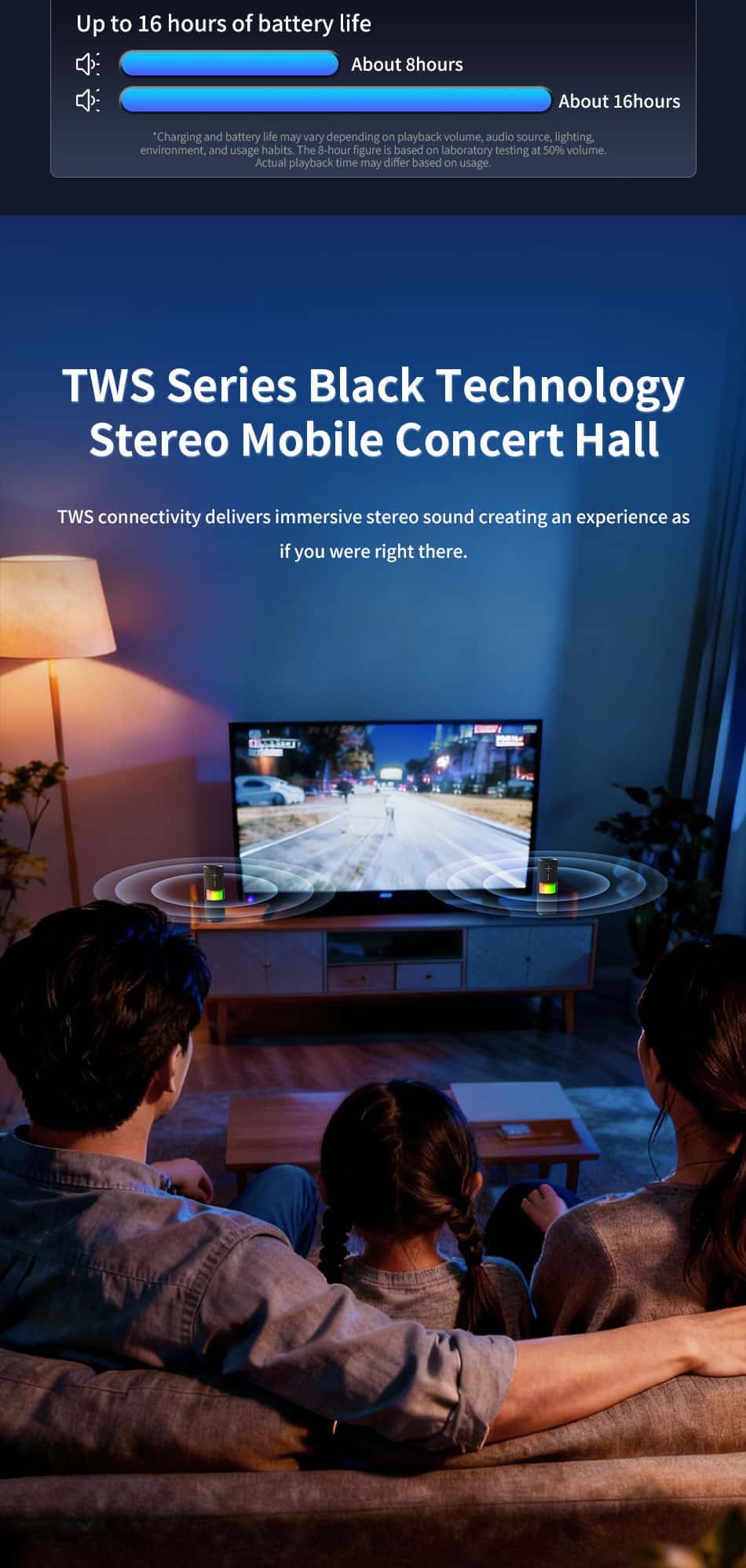 Long-Lasting 16-Hour Battery: A high-capacity 2000mAh battery provides extended playtime to soundtrack your entire day (varies by volume and settings).